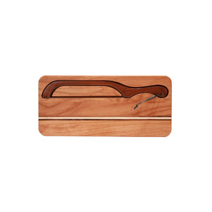 Our Deluxe Bread Knife Board with matching Bread Slicer is the perfect set for every homemade bread maker. This handsome board has strips of Walnut and Maple running through the board and comes with a Walnut Bread and Bagel Slicer which stores safely in the board. Easily and neatly slice all of your homemade bread, rolls, and bagels.