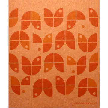 $7.99 USDSwedish Dishcloth, Geo Flowers Orange on Orange