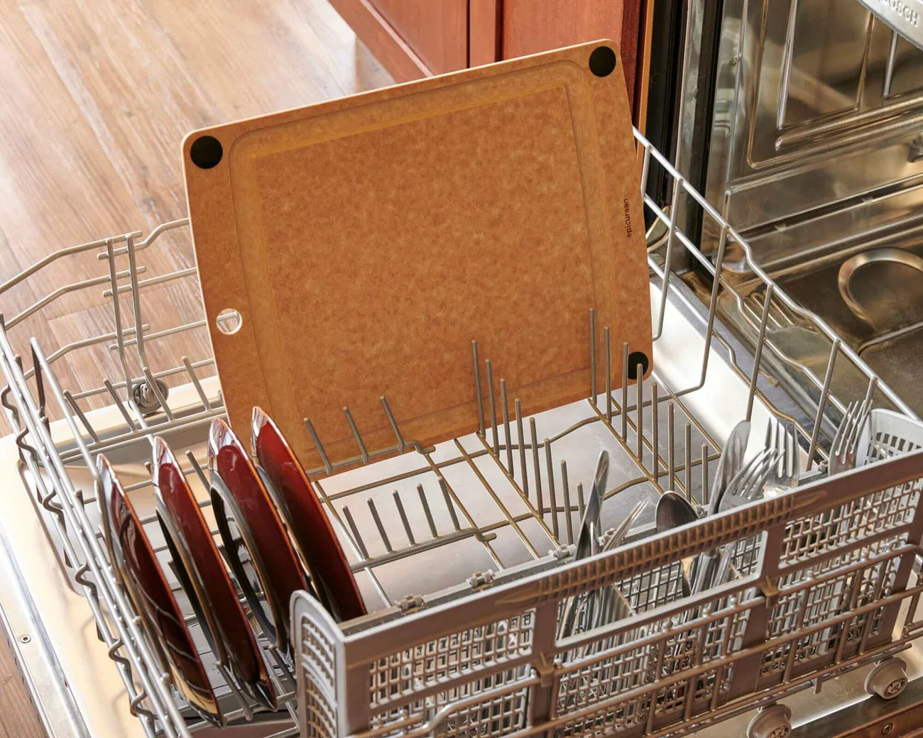 The best features of our most popular boards were combined into the Epicurean All-in-One Cutting Board Series. Utilize both sides of the board - use the juice groove side to catch excess liquids, or flip the board over if you need even more space. The four non-slip silicone feet keep the board secure either way.