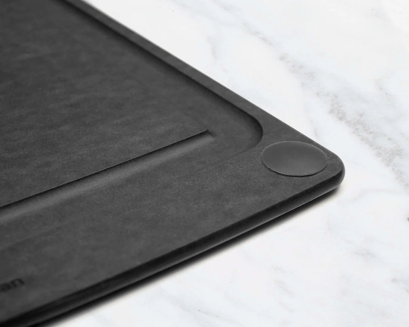 The best features of our most popular boards were combined into the Epicurean All-in-One Cutting Board Series. Utilize both sides of the board - use the juice groove side to catch excess liquids, or flip the board over if you need even more space. The four non-slip silicone feet keep the board secure either way.