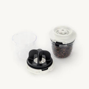 IMPORTANT: Do NOT grind salts or peppercorns in the Dried Herbs+ Pod