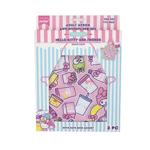 The Hello Kitty® and Friends Snack Shop Adult Apron & Potholder Set delivers sophisticated character styling specifically designed for grown-up fans. This officially licensed Sanrio duo features the premium touch of a removable plush bow and adorable bow-shaped potholder, creating a gift that's playful without being childish—perfect for the massive millennial market that never outgrew their Hello Kitty® love and now seeks character items that match their adult aesthetic.