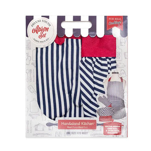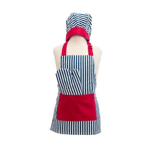 The Striped Deluxe Youth Apron Set by Handstand Kitchen® is a comprehensive 3-piece collection that transforms young cooks into confident chefs. Featuring classic navy and white stripes with red accents, this complete outfit delivers the "dress-up" appeal parents love while providing functional protection for real cooking activities. This unique 3-piece set combines timeless appeal with practical kitchen functionality, creating a gift that excites young chefs while delivering the quality parents expect from the Handstand Kitchen® brand.