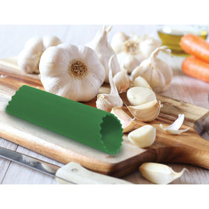 Fantes Cousin Monica's Silicone Garlic Peeler quickly removes the papery-thin skins from all types of garlic. Easily peel a single or multiple cloves in just seconds. The non-slip silicone creates a friction against the skins to peel cloves effortlessly without the hand strain or strong odors. Simply place garlic into the tube, press onto the tube from the outside lightly, and roll until the skins fall off. Made from BPA-free silicone, this garlic peeler is flexible, yet sturdy.