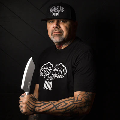 Cook like a boss! Our 8 inch BBQ knife was designed in collaboration with Bennie Kendrick, “The King of Backyard BBQ.” The knife has a deep rocker for effortless prep work on the cutting board. The butcher's style blade is ideal for cleaving and trimming meats. The 80/20 blade grind is finished with a razor sharp hollow ground edge. Designed with uncompromising attention to details, our high quality blades are crafted from German X50 stainless steel for knives that are rust resistant and easy to maintain. Solid bolsters and full tang construction give the knives great balance and heft.