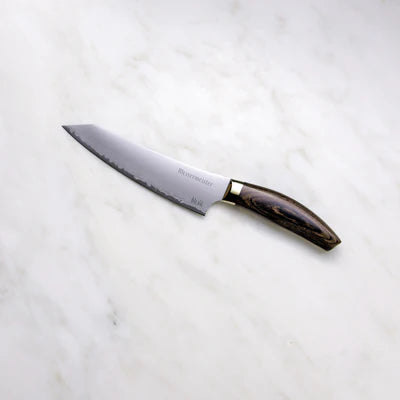 The exquisite Kawashima Magnet Block Set includes a 8" Chef's Knife, 9" Slicer, 6" Utility and a 3.5" Parer. The innovative modern design of the Kawashima knife line is characterized by its curved blade geometry, wide surface area and razor sharp 15 degree cutting edge made from rare SG2 powdered steel. The distinctive curved handle design ensures comfort while working by releasing arm tension and allowing smoother movements.