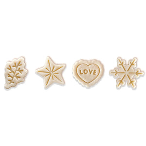 Cut and stamp fun, decorative shapes to enhance your pies and baked treats with ease. These versatile cutters are perfect for making bite-sized cookies (around 1.5") and also work great with fondant. Just roll out your dough, press out your desired shape, and use the plunger to add a decorative touch to the top.
