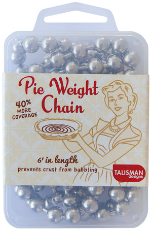 Prevent pie crusts and tart shells from bubbling with this 6-foot long chain, designed to help you blind bake your crusts perfectly. The larger beads provide 40% more coverage than other brands, ensuring an even bake every time. Made from BPA-free, FDA-safe stainless steel, it's dishwasher safe and comes in a reusable case for easy storage.